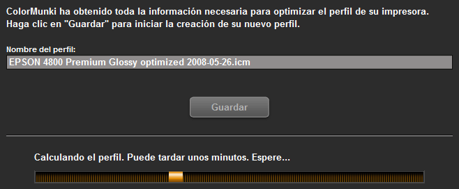 la cual se imprime de igual forma que las anteriores, se deja 10 minutos reposar y se lee finalmente para crear el perfil optimizado:
