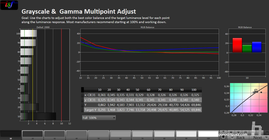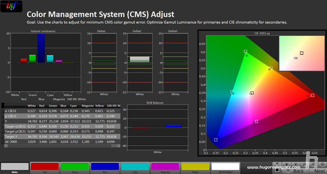 Todas las mediciones están hechas con CalMAN 5 y mi X-Rite i1 Pro2.