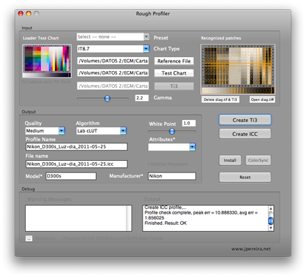 En la mayoría de cartas (y en todas las IT8 de la competencia) el software es algo que, o bien, no se contempla, o bien se vende aparte. Nuestra carta IT8 viene con software gratuíto tanto para Windows como para Mac. Para Windows se surte con CoCa Color Camera Calibrator, un software desarrollado por Andrew Stawowczyk para la National Library of Australia, y que he traducido al Español personalmente. Para la plataforma Mac contamos con Rough Profiler, un programa similar, 100% español, desarrollado por Jose Pereira, con el que ahora colaboro para integrar los archivos de referencia de la carta en el propio programa.