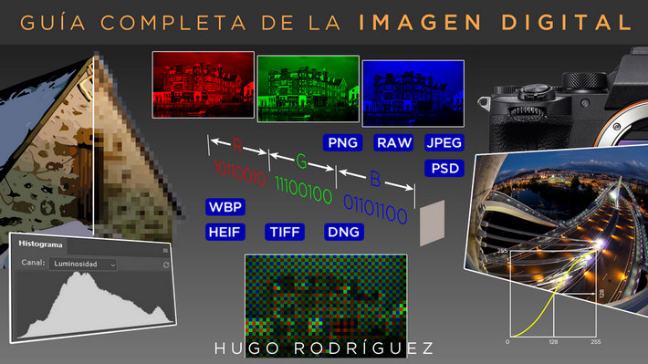 GUÍA COMPLETA DE LA IMAGEN DIGITAL es un libro que trata todos los aspectos básicos de la imagen digital, y está pensado para poder llevar encima y leer en cualquier lugar. No es el típico manual de Photoshop ni tampoco de los conceptos archirepetidos de la fotografía (velocidad, diafragma…) sino un libro para aprender los conceptos esenciales de la imagen digital, es decir, de todo lo relacionado con los píxeles: tamaños, megapíxeles, resoluciones, formatos, compresiones…