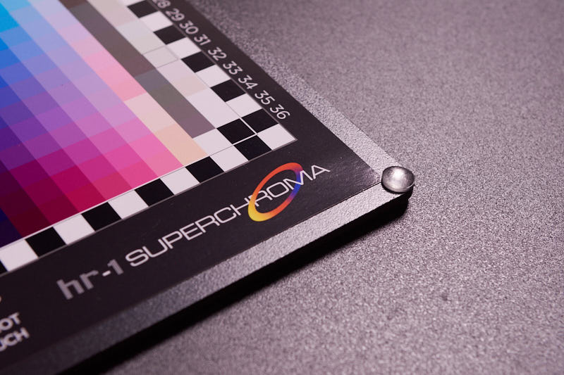 A capture of the card that is not evenly lit can ruin the resulting profile. For this purpose, the HR-1 has white and black perimeter patches that allow to visually (and numerically if any software makes use of them) check for any uneven illumination as well as color balance.