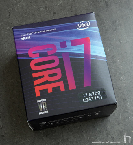Para la mayoría de gente el procesador central (en adelante, CPU) suele ser uno de los componentes principales. Para mi no tanto, porque hoy dia la potencia que tienen es realmente alta y más que suficiente para la inmensa mayoría de tareas. Y para las más exigentes, es la GPU la que marca la diferencia. La CPU que he escogido es un Intel Core i7-8700 de 3,2 Ghz.