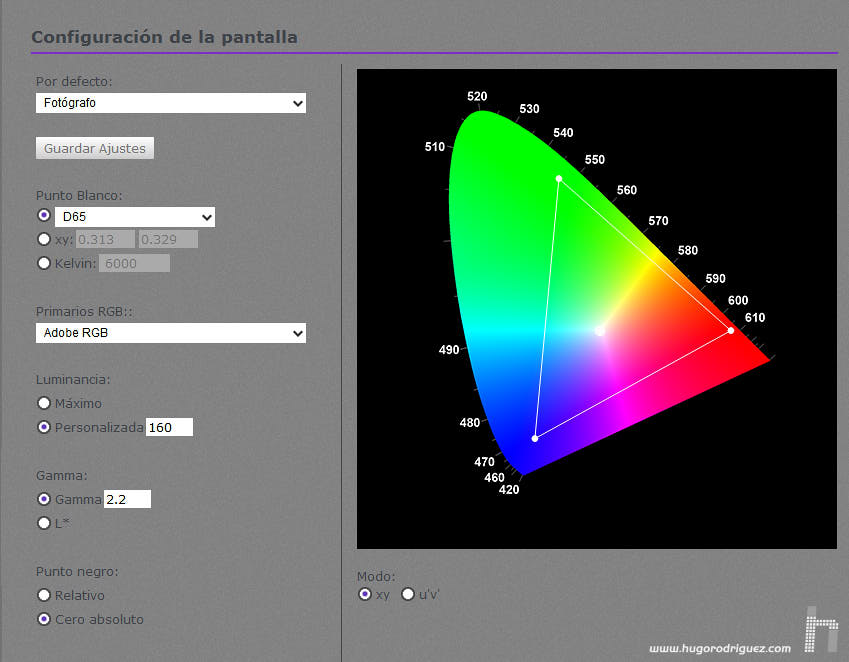 Seguidamente, y dejando el gamut ajustado en Adobe RGB (el nativo), tuve que tocar sólo un poco la desviación de los colores primarios para conseguir este resultado: