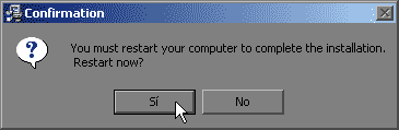 Finalmente, pulsa Sí para reiniciar. Una vez reinicie verás que se carga automáticamente el programa y aparece una ventana: