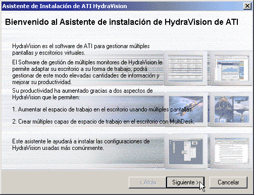desactiva Multidesk si no quieres tener varios escritorios, por las mismas razones que explicaba en el caso de las nVidia y pulsa Siguiente: