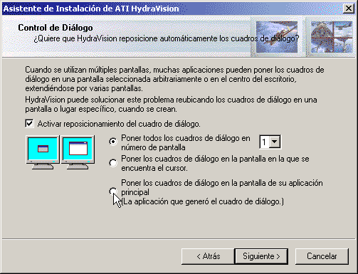 Pulsa Siguiente y escoge estas opciones, para que cuando aparezca alguna ventana de advertencia del programa con el que estés trabajando, lo haga en ese mismo monitor: