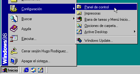 - En W98/SE ve a: "inicio > configuración > panel de control"