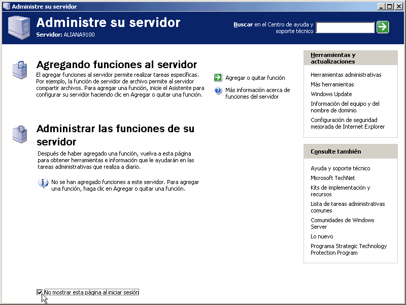 (des) Configurando el servidor Nada más arrancar el sistema y entrar en el escritorio aparecerá esta ventana: