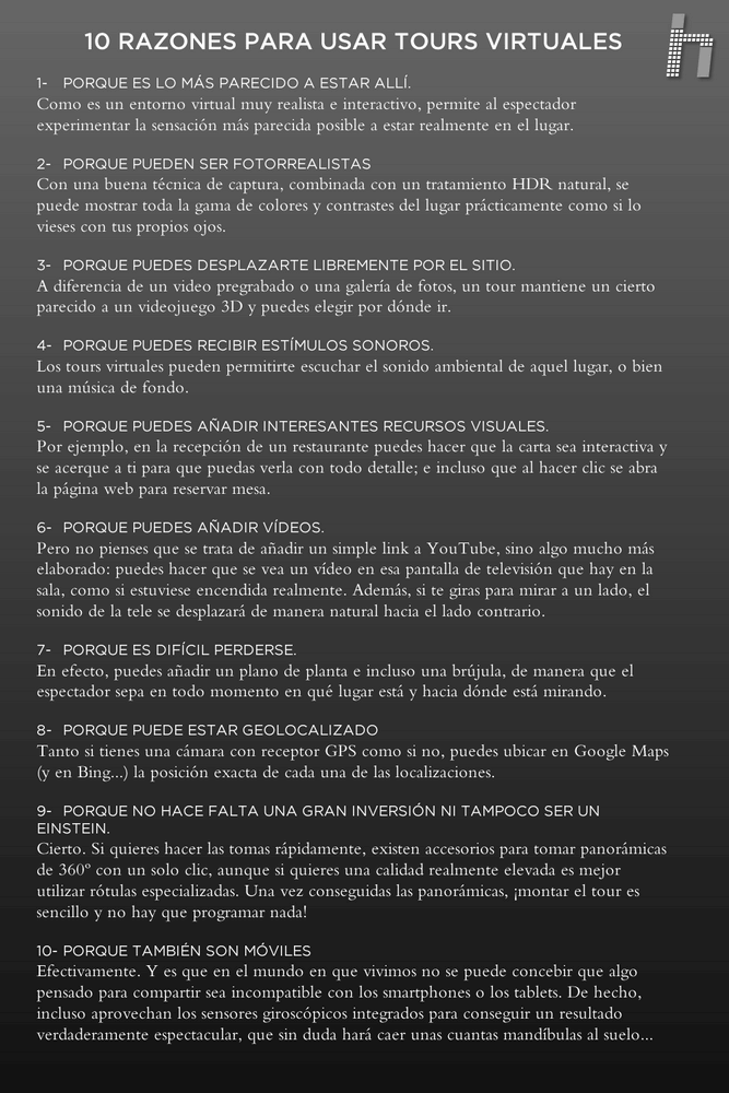 ¿Sabes qué es un tour virtual? ¿No? Echa un vistazo a este y lo verás. Un tour virtual es la mejor forma de enseñar un lugar a traves de Internet, usando toda la tecnología disponible.